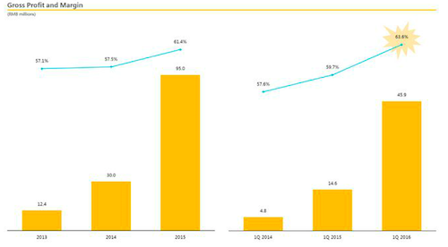 按照51Talk目前33%的师资成本,毛利率约66.6%,虽然有可能因为学费涨价进一步提高毛利率的潜在可能,但是菲律宾劳动力成本也有上涨压力,所以66.6%应该是公司毛利率上限(2016年Q1公司毛利率为63.6%)。