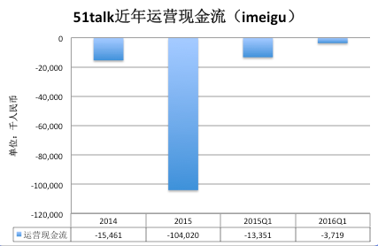 6、运营现金流2016年Q1为-371.9万人民币,接近转正,可以预期很快将实现运营现金流打平