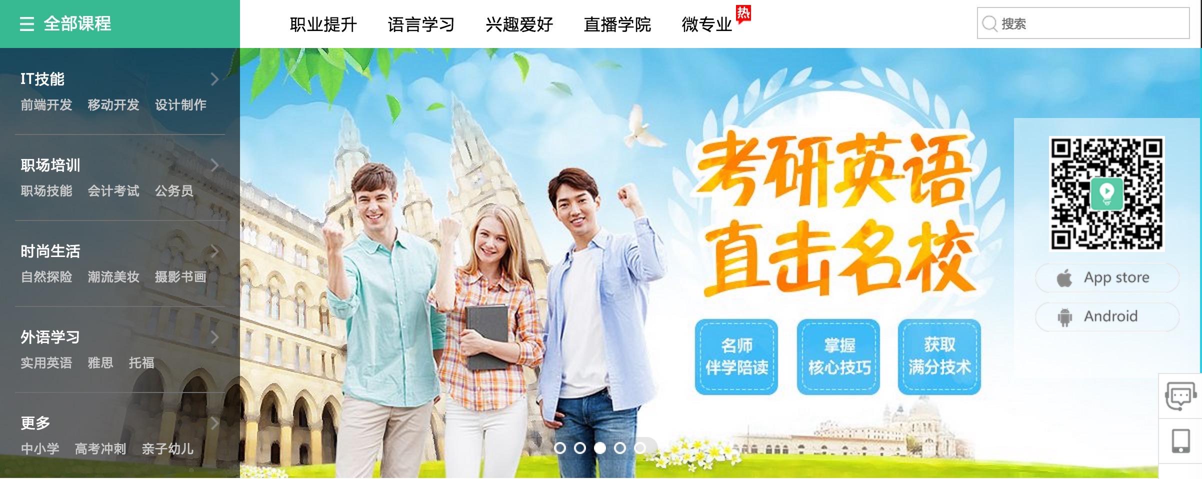 2014年8月28日跨学网正式上线。目前,跨学网的服务功能包括向学生提供直播课程和向老师提供备课资源。