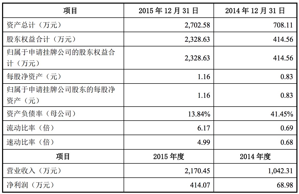 根据公开转让说明书显示,伟才教育2014年营业收入1042.31万元,净利润为68.98万元;2015年营业收入为2170.45万元,净利润为414.07万元。近两年收入状况如下: