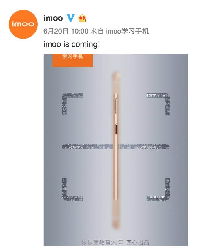 今年6月,步步高注册了新的手机品牌“imoo”,官方微博也通过了认证(步步高教育电子有限公司)。6月20日,在imoo手机的官方微博上,发布了一张主打功能手机的图片。