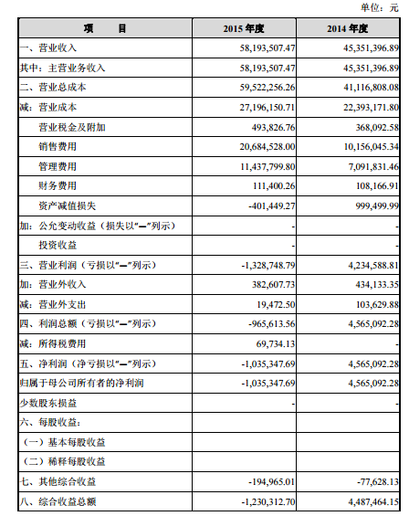 报告期内,远播教育 2014 年和 2015 年的主营业务收入分别为 4535.14 万元和 5819.35 万元。净利润分别为为456.51万元和-103.53万元,最近两年的主要会计数据和财务指标如下表所示: