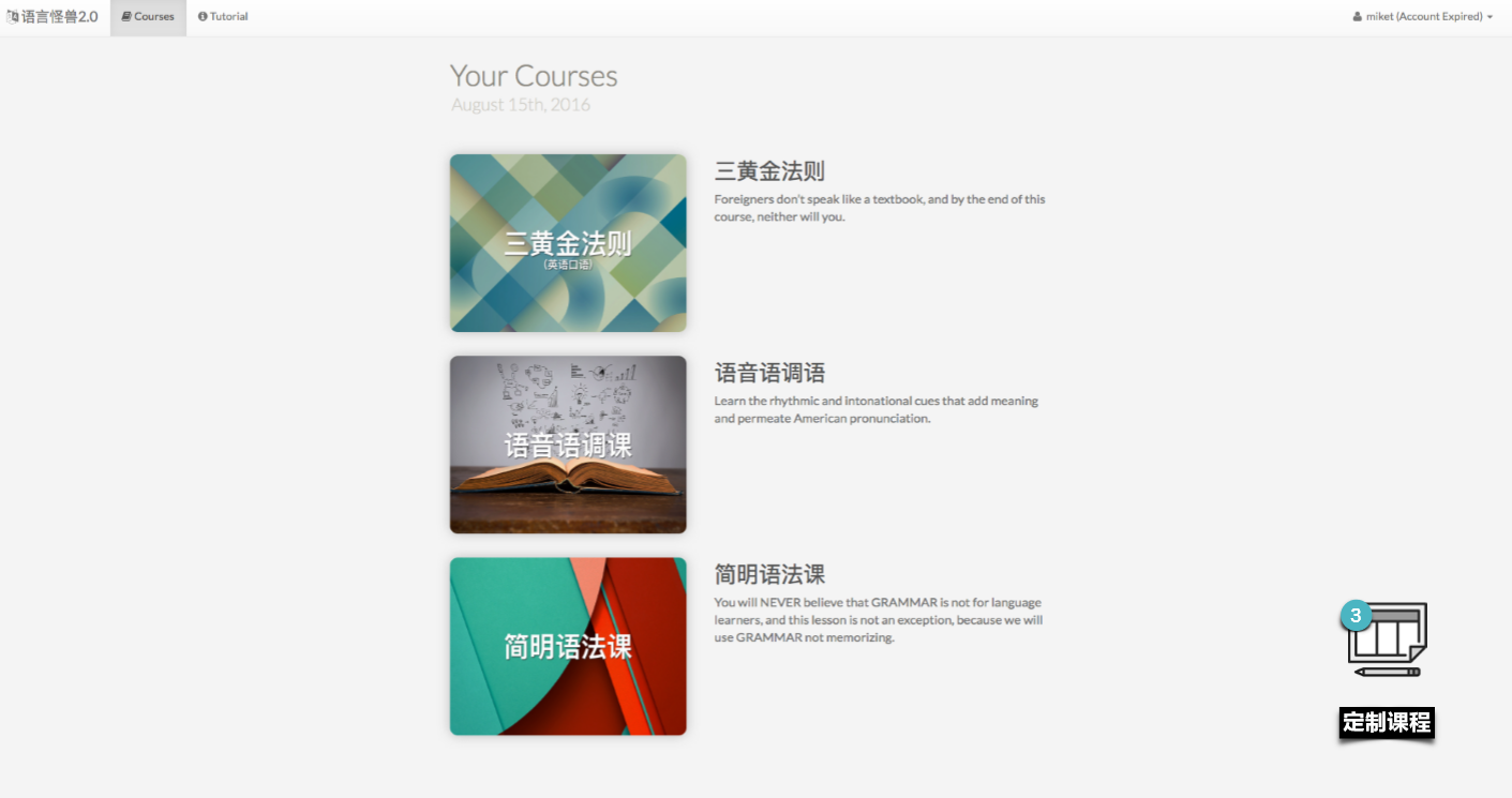 2016年囧书网相继发布包括『语言怪兽』(口语提高训练微课),以及『柠檬语法』(语法搜索测试,训练,反馈系统)2套产品。随时可以开始学习,并可得到口语老师的针对指导。