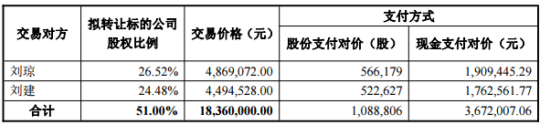 报告书披露,为完成本次交易,华博教育拟以13.49元/股的价格向刘琼、刘建发行华博教育1088806股普通股 以支付交易对价80%价款,拟向刘琼、刘建支付现金367.2万元作为交易对价 20%价款,本次交易未涉及募集配套资。对价支付方式如下:
