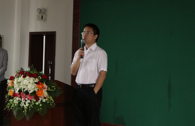图为2011年,张邦鑫在深圳分校分享企业文化。