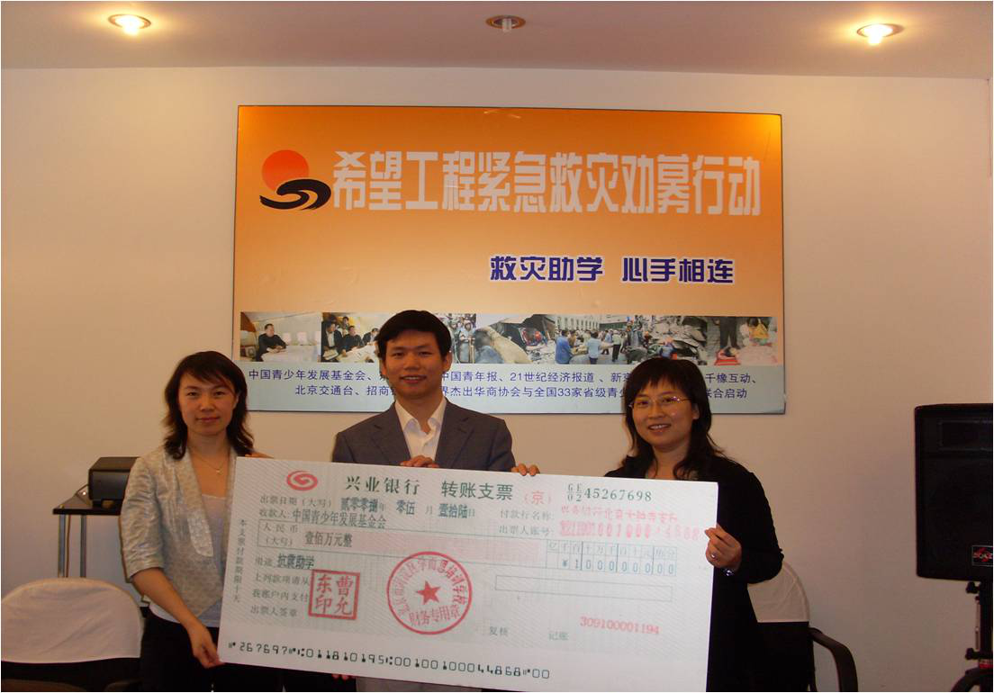 汶川地震发生后,学而思为灾区捐助款项200万元,用于救灾助学。同年,第一所希望小学也在甘肃礼县确认落实。
