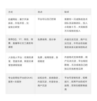 阔知网的 CEO 陈荣介绍,在线教育平台发展主要有四种模式: