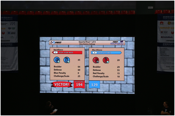 比赛结束后,屏幕上会给出两队得分。