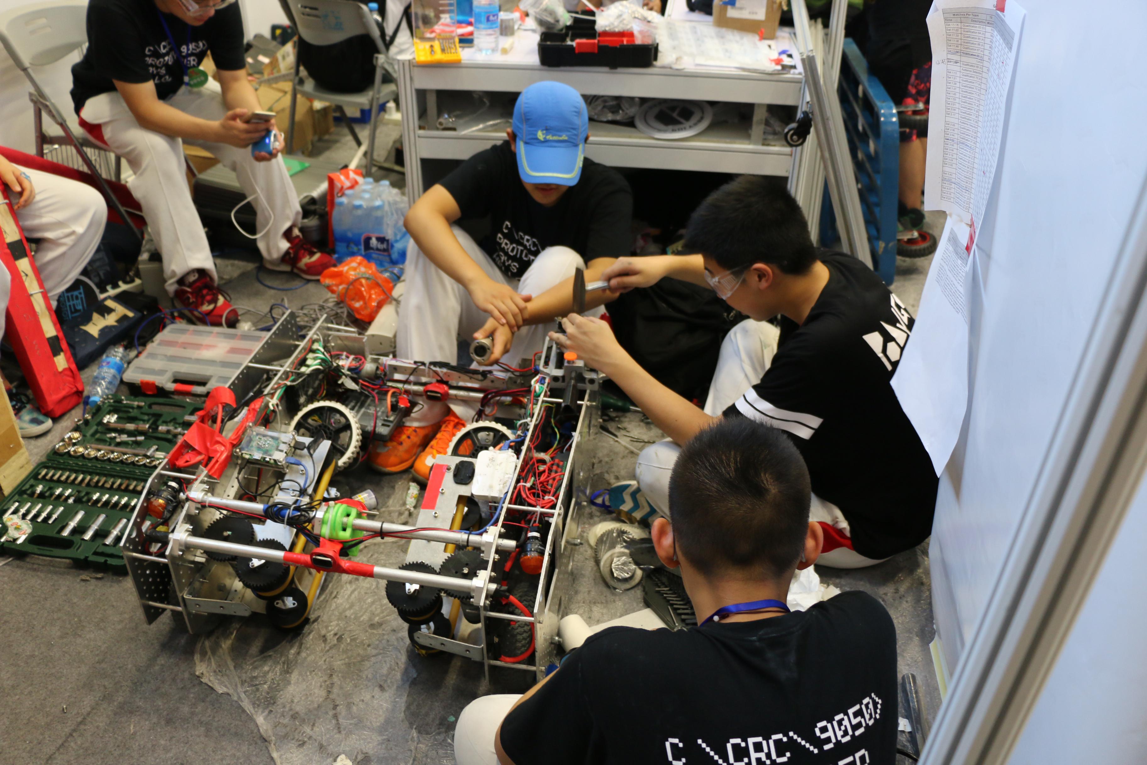 在现场,孩子们对机器人的热爱感染着在场的每一个人。参赛的队员们比赛期间经常熬夜讨论战术,讨论机器人故障如何解决,学习研究更好的技术和方案。