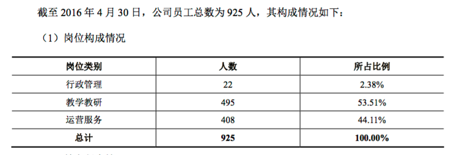 截止2016年4月30日,高思教育共有925人。具体人员构成情况如下: