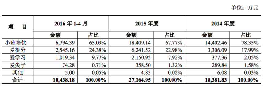 高思教育在说明书中称,爱学习业务收入在报告期内的整体规模和占比呈现快速增长趋势,2016 年1-4月收入1019.34万元,占比达到 9.77%,主要是“爱学习”在线教学平台已经与上海昂立教育、广州卓越教育、巨人教育等达成合作关系。