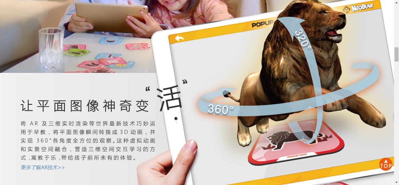 小熊尼奥创始人熊剑明表示,在普通家庭中,大多数的家长们尝试为孩子营造实体的教育环境,但更多的孩子还是喜欢抱着手机与平板电脑等科技产品,这是现实中的很大矛盾点,小熊尼奥推出的AR产品,是在尝试把教育产品与科技交互,通过AR技术的叠加,在传统玩具的基础上融入教育和科技。