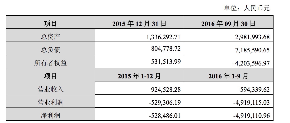 如表所示,2016年1-9月,希嘉教育营业收入59.43万元;净亏损491.91万元;2015年1-12月,希嘉教育营业收入92.45万元;净亏损52.85万元。