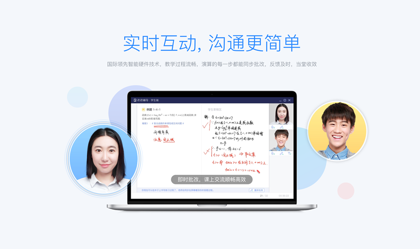 学霸君表示,君君辅导的教学模式可以解决以往在线1对1授课中,师生互动效果不佳、学生上课缺乏监督、视频清晰度不够导致板书看不清等痛点。