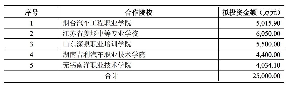 同时,新南洋拟投入资金2.5亿元新设立职业教育产业平台,其中拟投入募集资金 2.37亿元,具体情况如下: