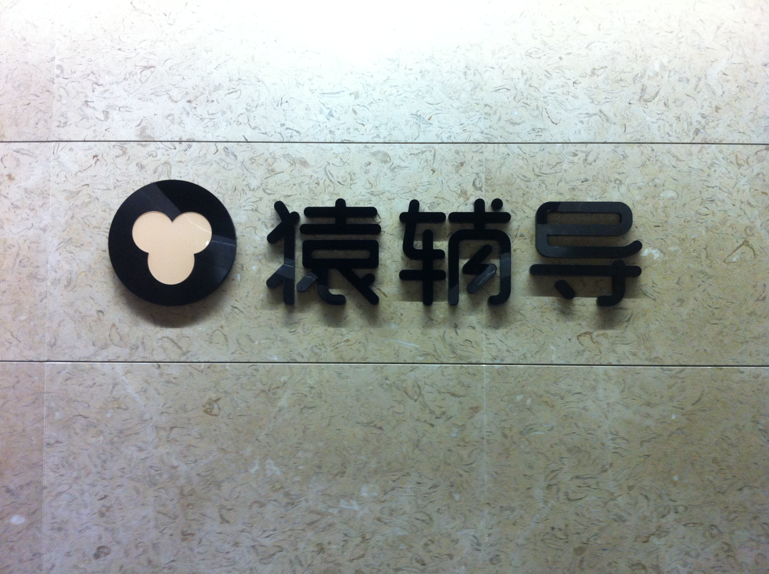 5、6层电梯间的墙上,猿辅导醒目的LOGO似乎在说:“这层楼被我承包了。”这个黑圆打底、三瓣米色圆居中的LOGO写意地表现出一只小猿猴的脸部轮廓。记得还有一个广为人知的简单粗暴地用几个圆圈来表示动物剪影的形象是迪士尼的米奇。