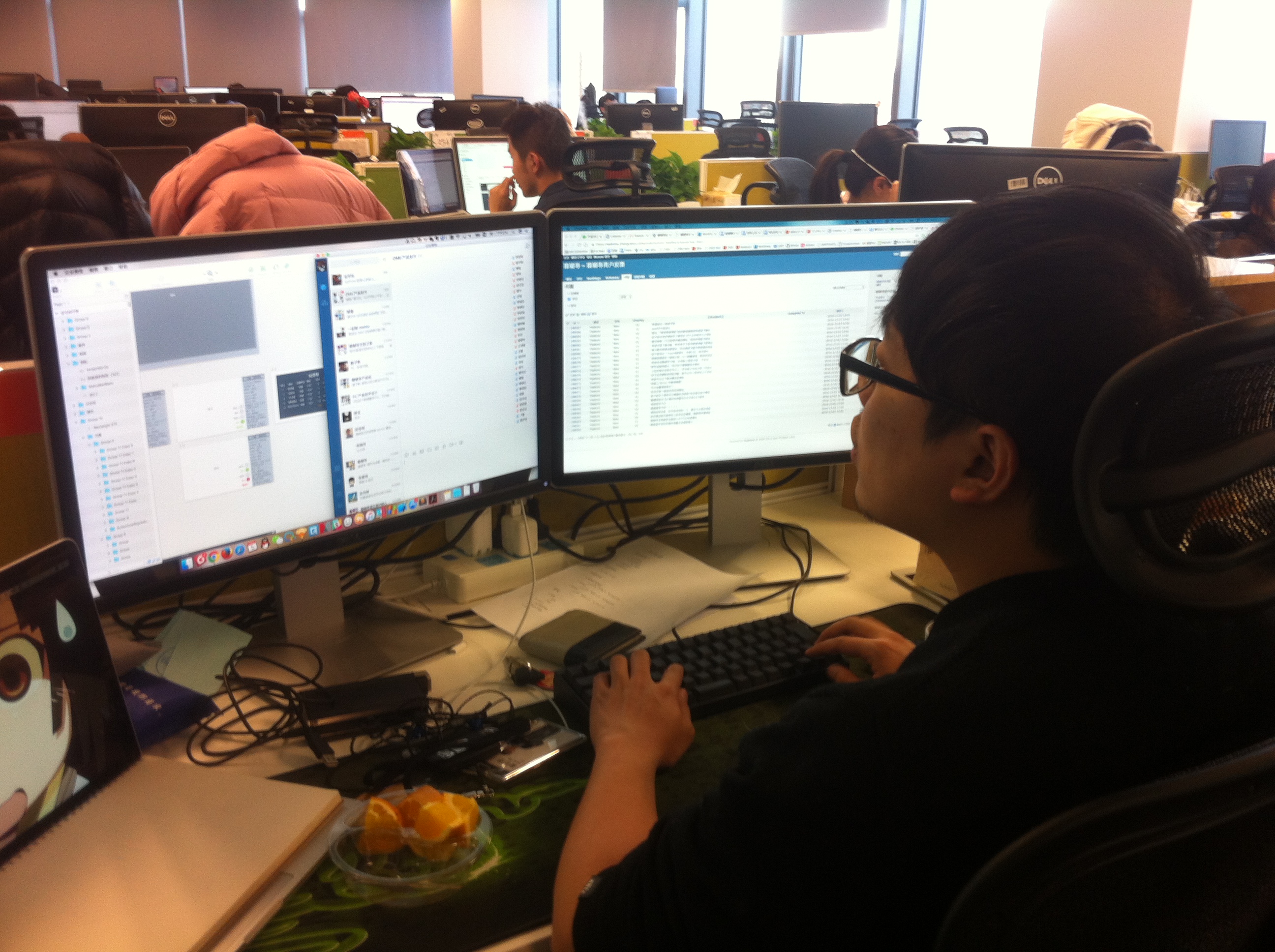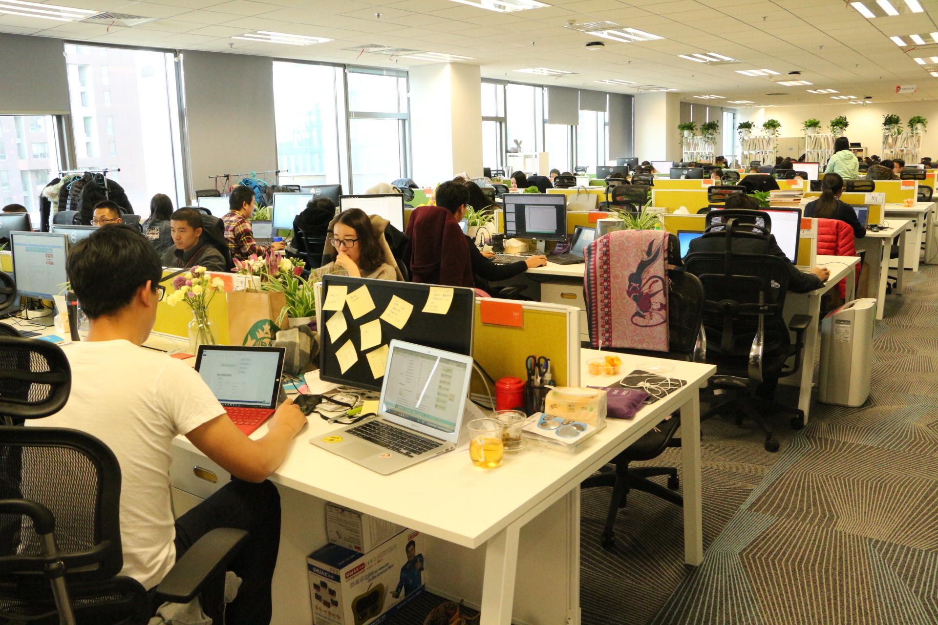 每一块小牌子下面,都是忙碌地敲击电脑的人们。