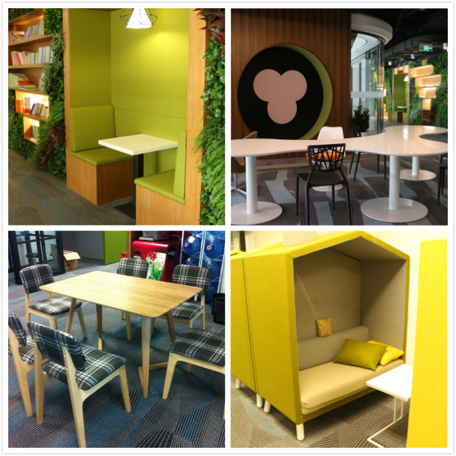 忙碌的工作区周边散布着供员工休息和会谈的空间,有的是开放式桌椅,有的是相对私密的沙发,一层楼里面也不带重复的。