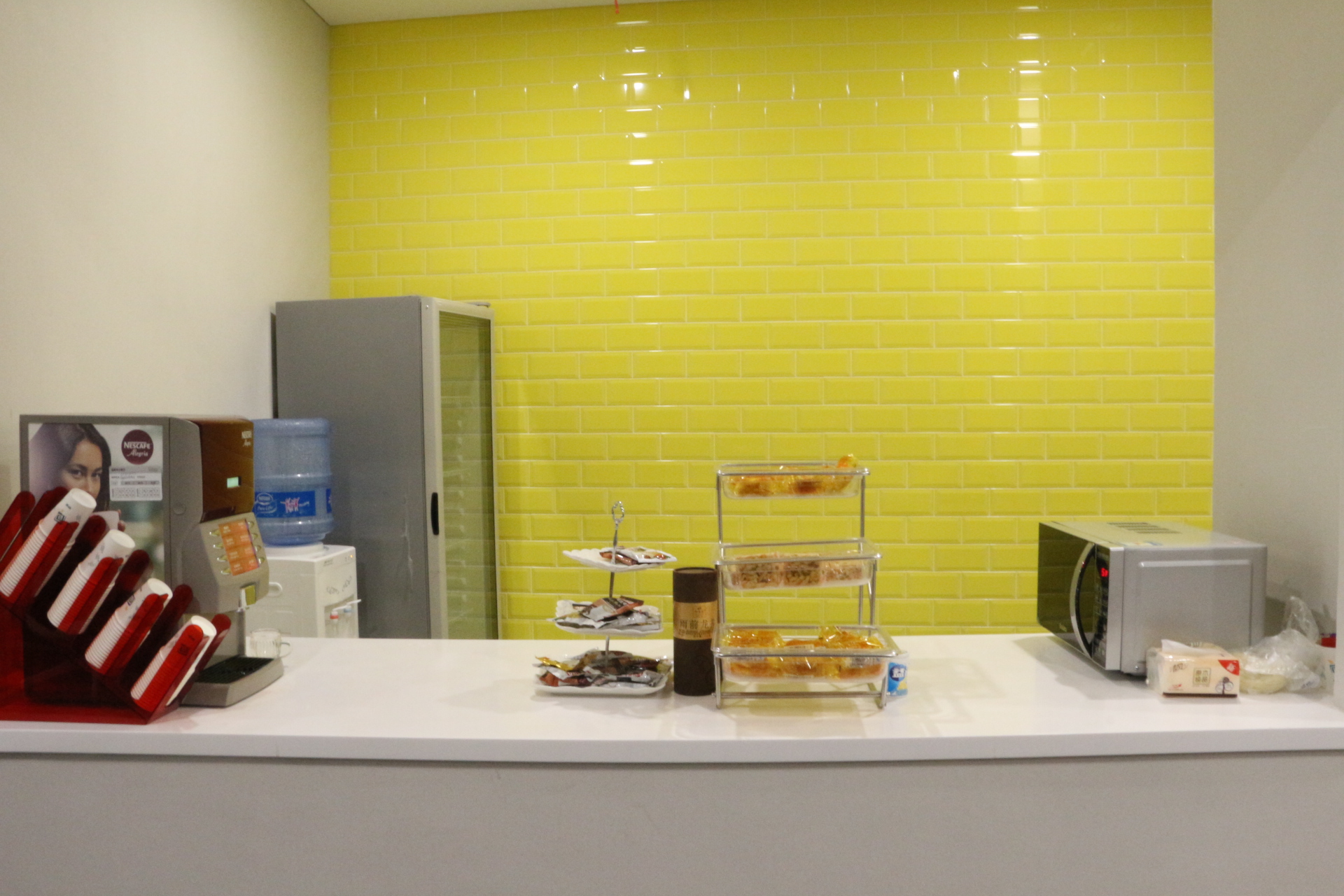 每层楼还设置了母婴室和茶水间。母婴室有水池、冰箱,茶水间则是饮水机、咖啡机、微波炉一应俱全。