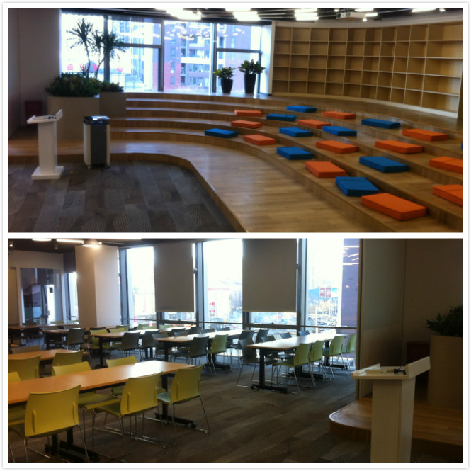 工作人员介绍,6层主要是猿辅导的技术、平台类部门,5层是教研、市场类部门,而4层则是直播室、礼堂、餐厅和粉笔的办公区。