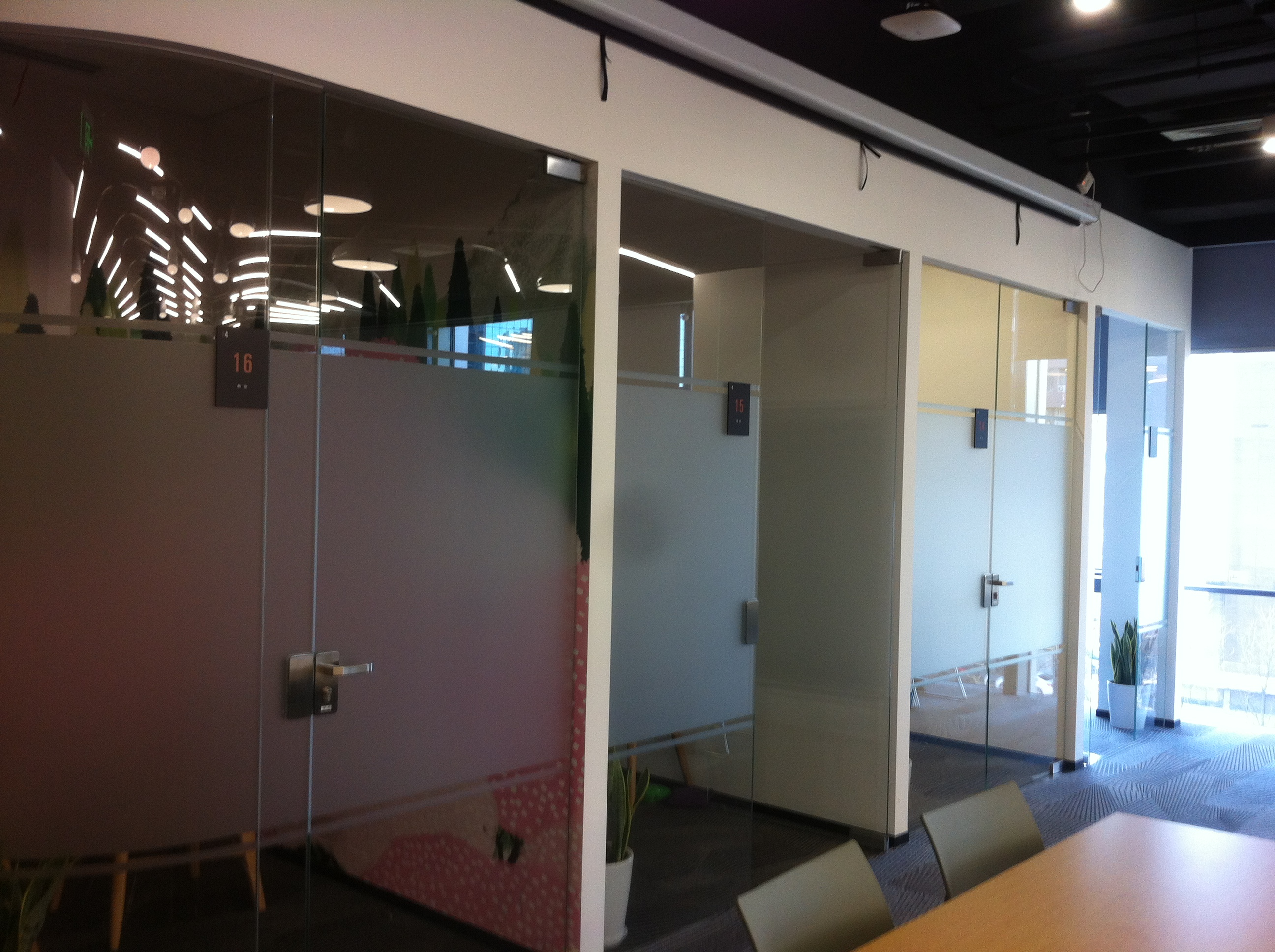 餐厅座位尽头的一个个玻璃房就是猿辅导的直播室了。这里集中排列着20间直播室,里面设置了桌椅,老师在直播室用pad连上耳机就能上课。