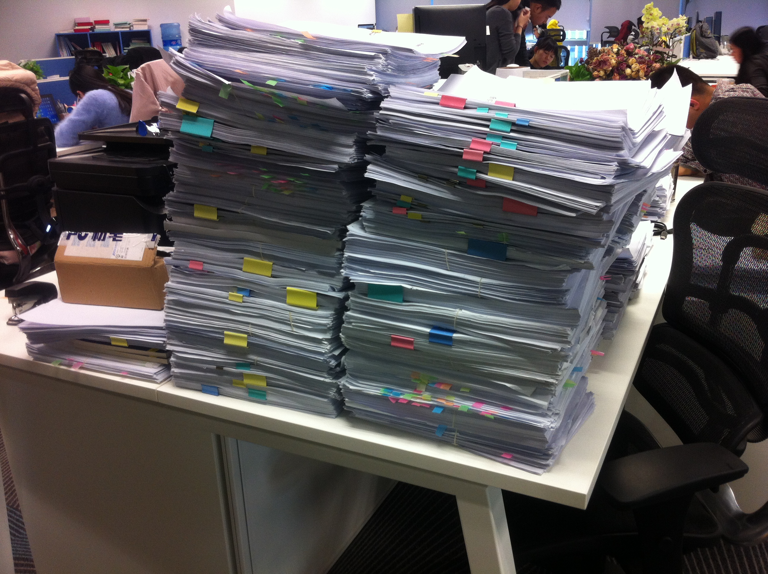 粉笔的办公区同样忙碌,桌子上常见一摞摞厚厚的讲义。