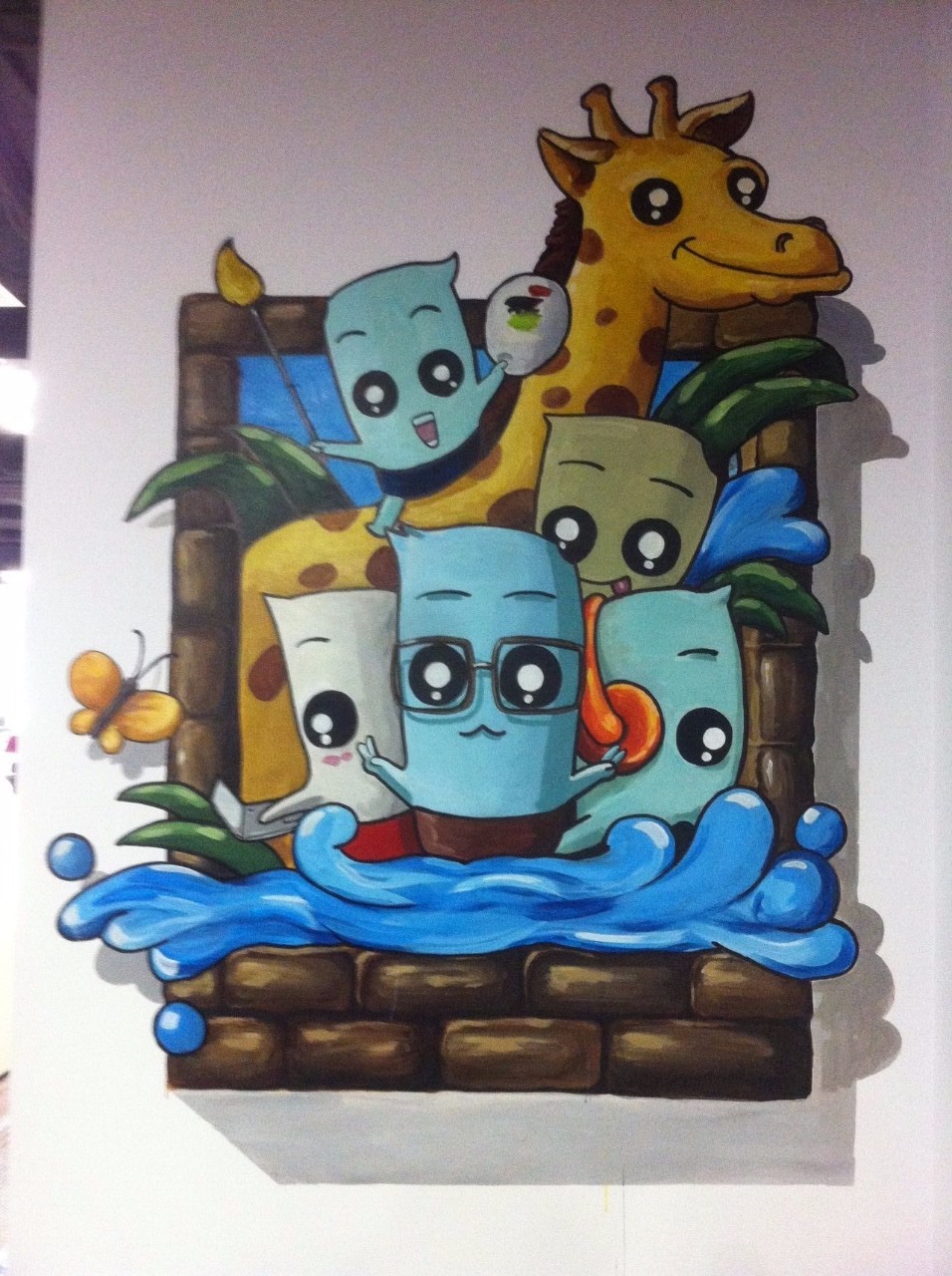 走过前台后拐角处墙上的小粉笔立体画不知“骗”过了多少人的眼睛呢?笔者向你保证,这就是平面的壁画。