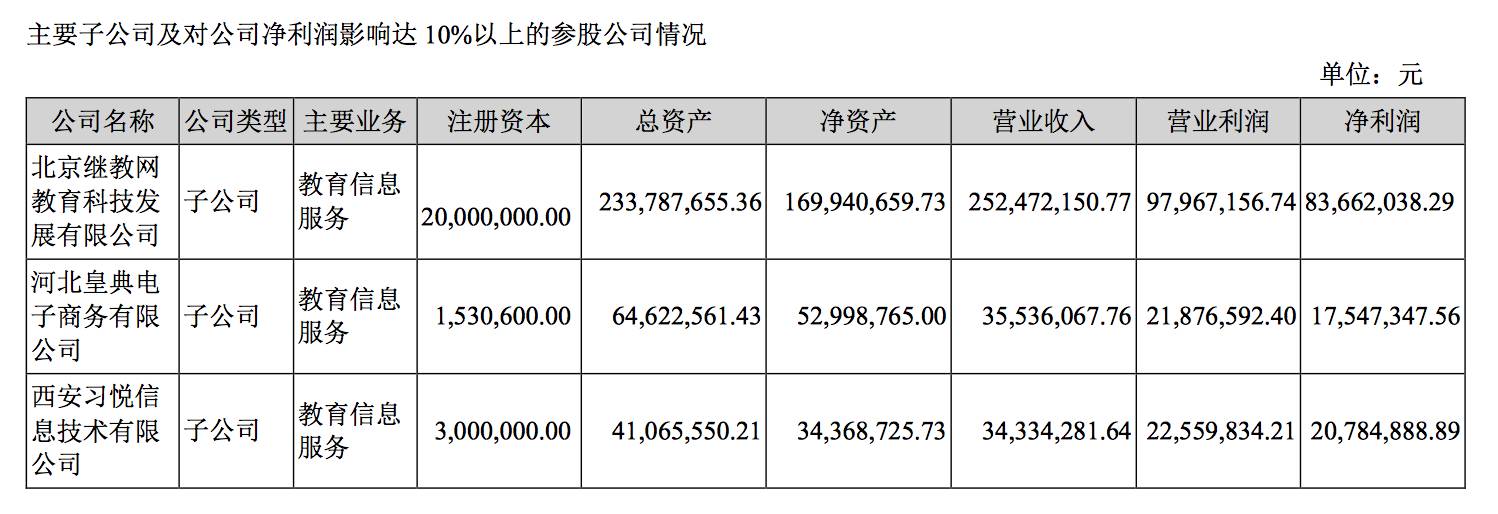 根据2016年财报,全通教育净利润1.03亿元,同比增长了9.99%。其中前三位利润贡献者,继教网、西安习悦和河北皇典净利润分别为8366.2万元、2078.85万元和1754.7万元,合计1.2亿元。这意味着,其它的业务基本呈亏损状态,大部分并购项目整体是有营收、无盈利。