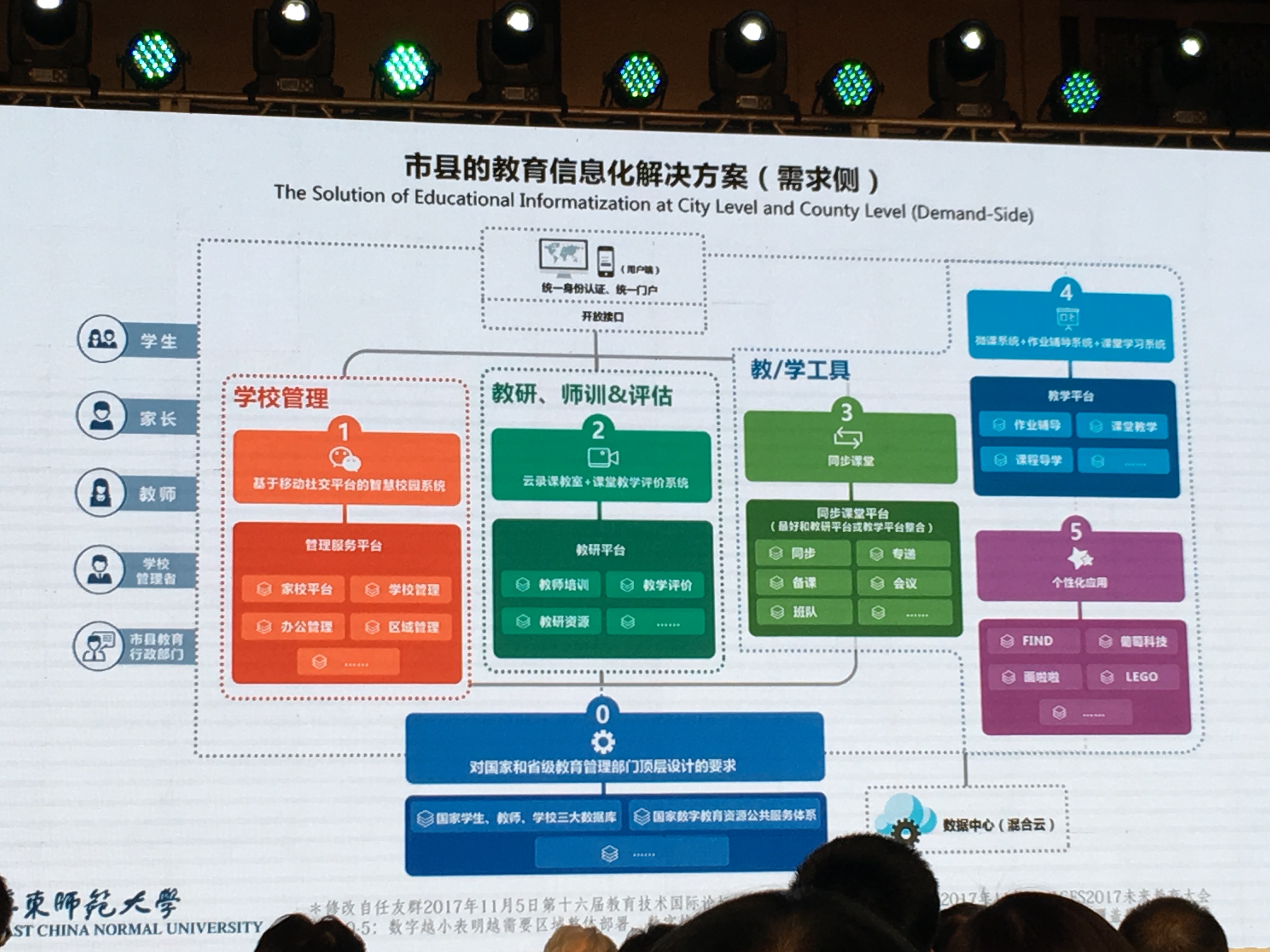 在国家及省级层面,不能忽略中国是有无数市县组成。大部分的基础教育都由市县层级的教育主管部门管理,这个环节教育信息化工作至关重要。