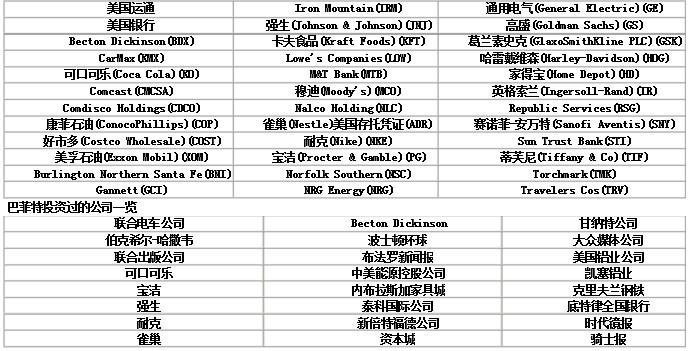巴菲特持有的公司和曾经投资的公司 按字母顺序排序(多知网 配图)