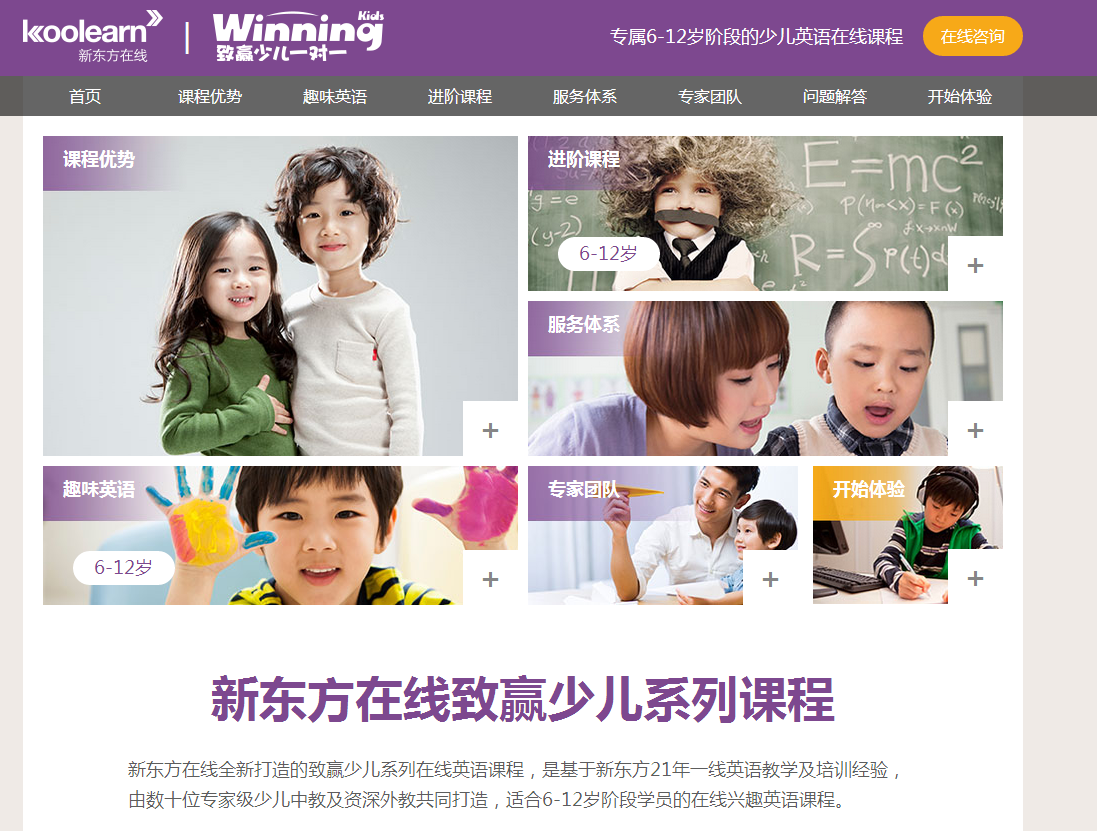 多知网5月29日消息,今日,新东方在线正式推出了少儿在线英语课程“致赢少儿一对一”(winning.koolearn.com/kids)。