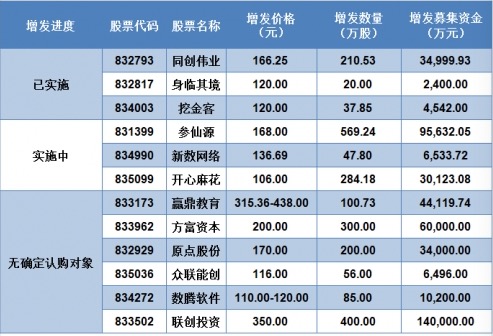 新三板增发价超100元的公司 (图片来源:挖贝网)