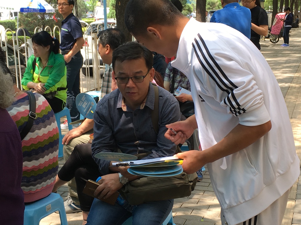一天20个电话,抛去路费,每个人可以得到100块。今年,嘉华世达在北京的每个考点都设置了地推人员。