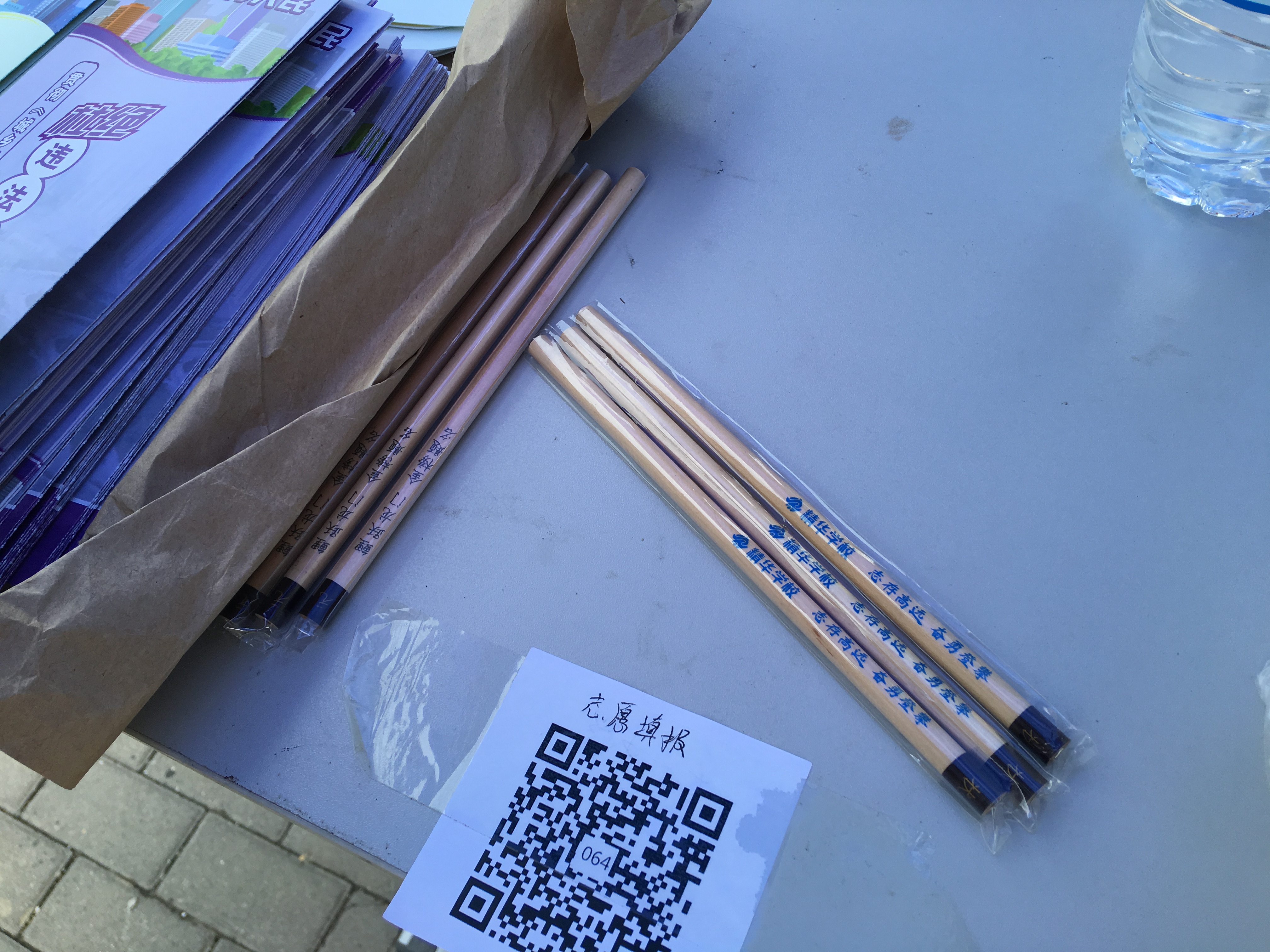在北京城管的免费饮水站内,还有一名来自精华学校的工作人员,他介绍,此次精华学校与新京报合作,为学子及家长提供考试铅笔及报纸。