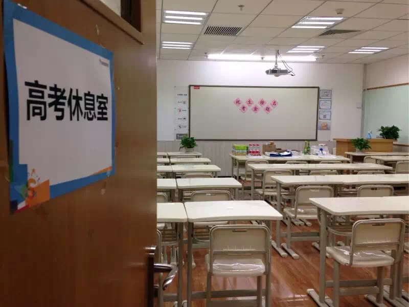 好未来在北京的一些校区内设置了高考休息区,白板上写着“祝考生金榜题名”,并准备了药品、零食、文具。