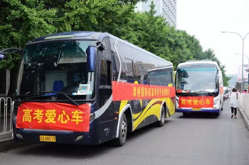 除了为家长及考生提供休息场地及考试素材,还有的机构在以其他方式支持高考,津桥国际派出5辆爱心大巴车接送考生,同时家长也可以在学生考试期间到车内休息。