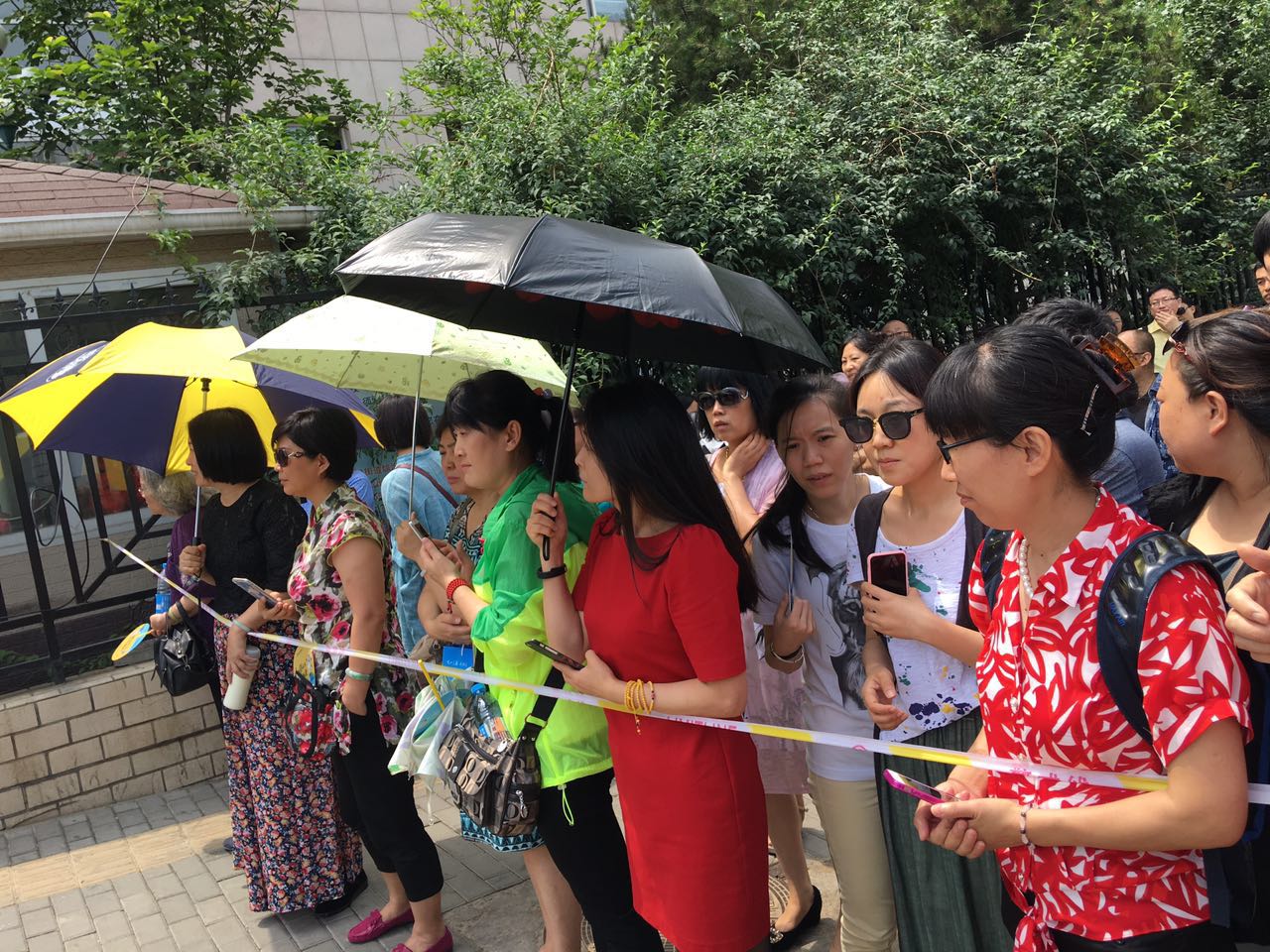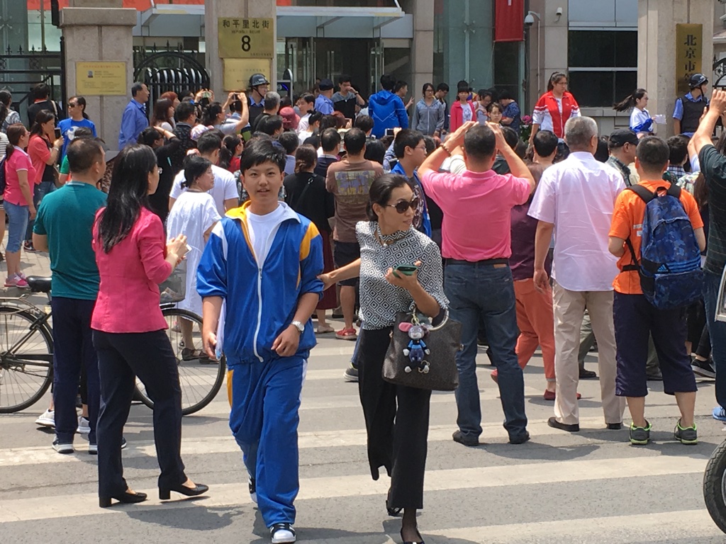 北京市东城区一七一中学的校门口也在一瞬间恢复平静,刚刚还和孩子聊天、拍照的家长们,渐渐散去。