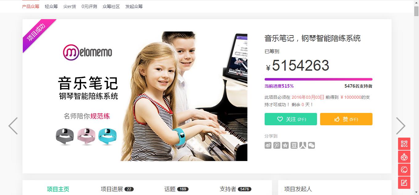 音乐笔记于2015年7月获得未来工厂数百万人民币的天使轮投资。今年1月,音乐笔记上线京东众筹,截至目前已筹得515万元。