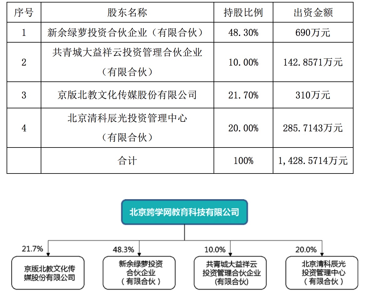 乔帅为跨学网CEO,且通过持有上述新余绿萝1%股权、以及樟树市盛合投资管理中心(有限合伙)99%股权,分别持有新余绿萝合伙份额的99.01%、大益祥云合伙份额的36%,为跨学网实际控制人。
