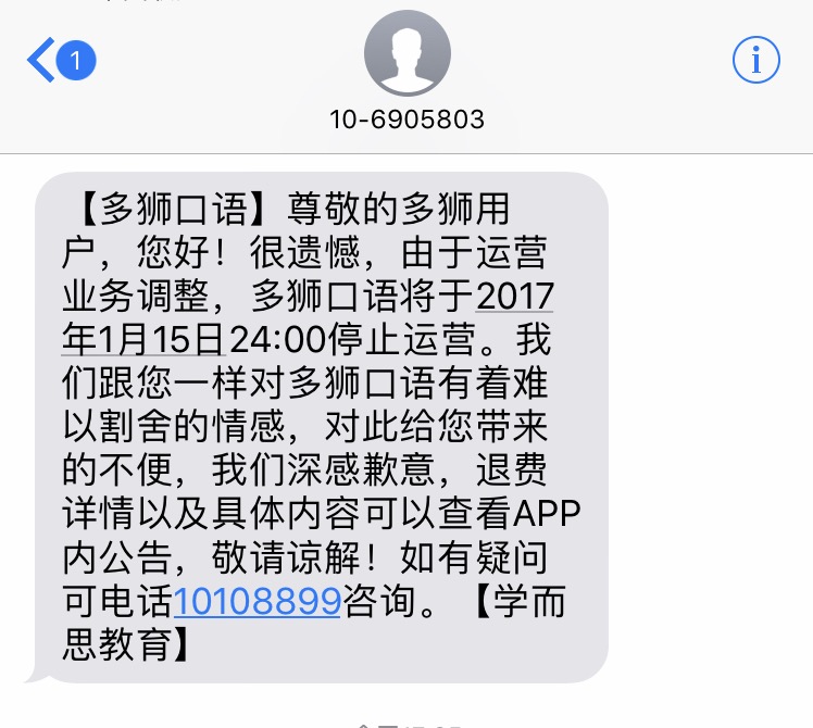 我们跟您一样对多狮口语有着难以割舍的情感,同时也向一路支持多狮口语的朋友们致以最深的歉意。