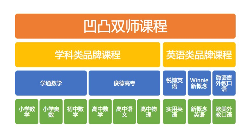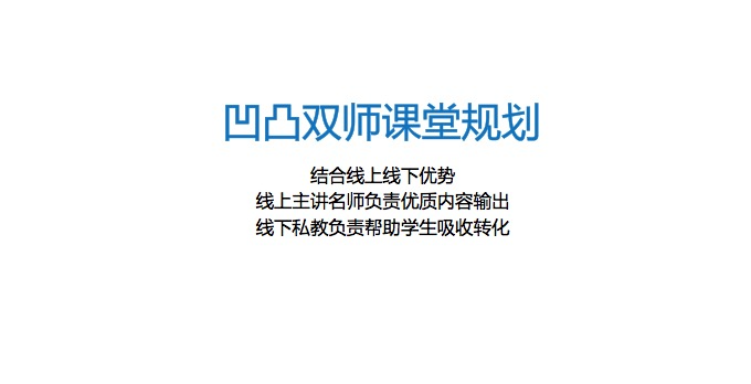 双师在投入方面确实很大,而且要有门面与品牌。凹凸现在升级为混合个性化教学,开双师教学班课,做1对1导流。凹凸在针对地域间教材不同一的问题,专门划分了两种课程。一种是通用课程,主要包括奥数、英语等方面;一种是区域性课程,主要包括小升初、中考和高考等方面。并且在未来,凹凸会在有超过20家加盟店或直营店的省份,建立省一级直播中心,来更好的解决这方面的问题。