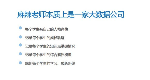 在技术方面,麻辣老师的团队现在已经做了一年半了,做了很多的储备。有强大的支撑系统,是双师模式能够顺利进行的关键。