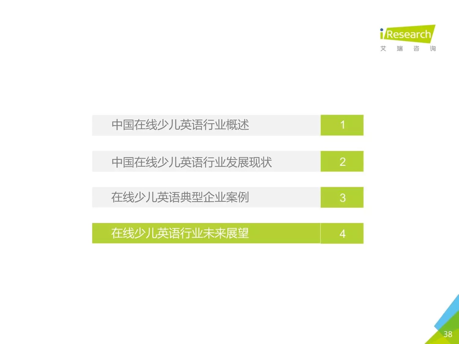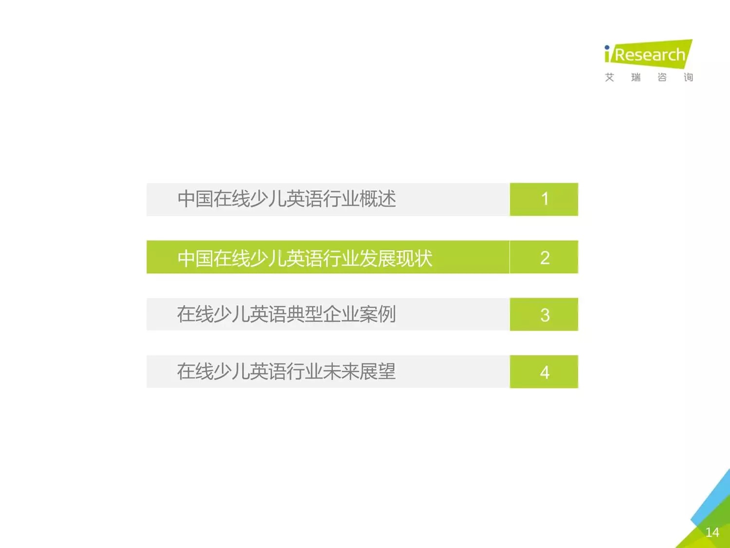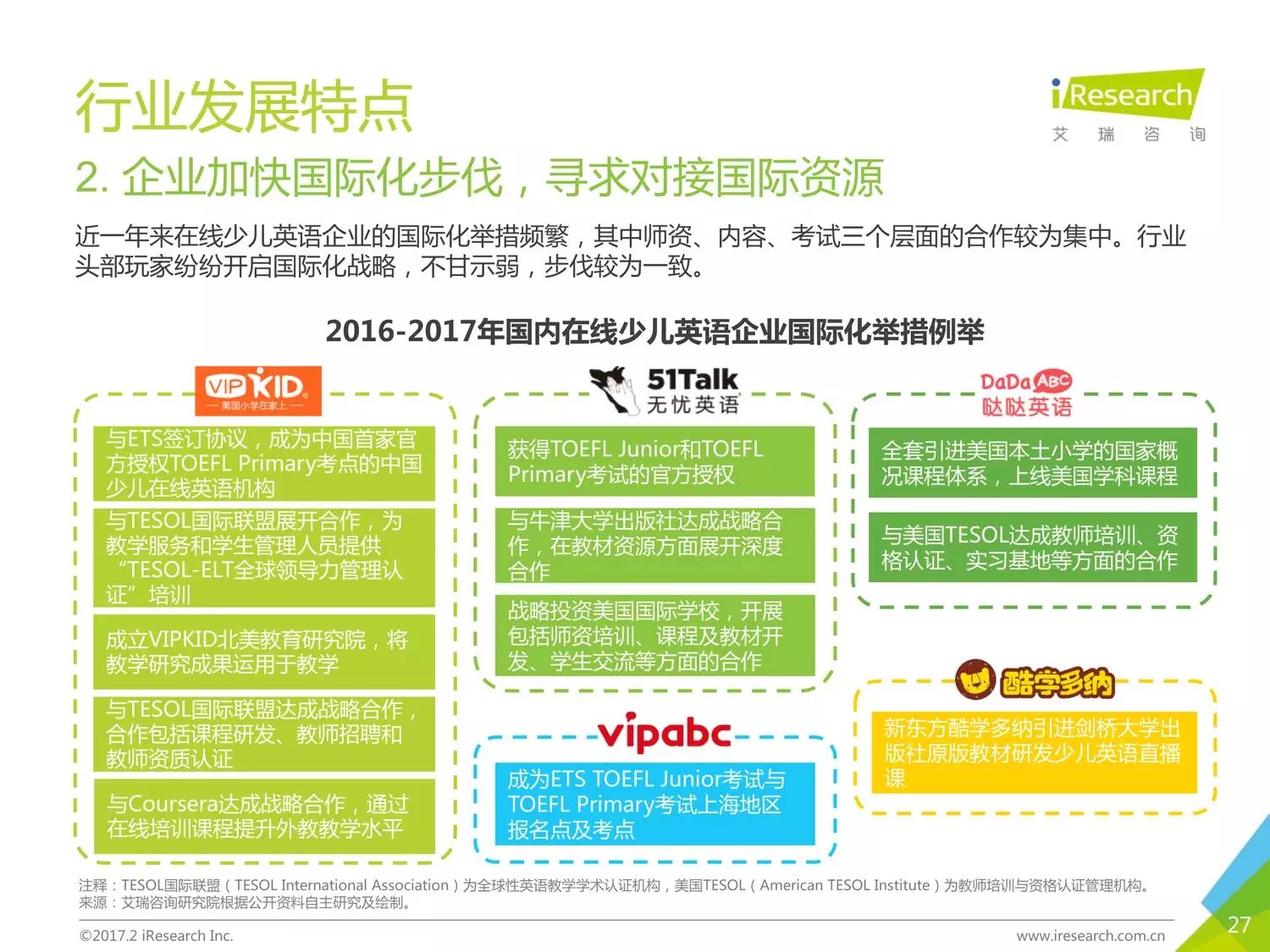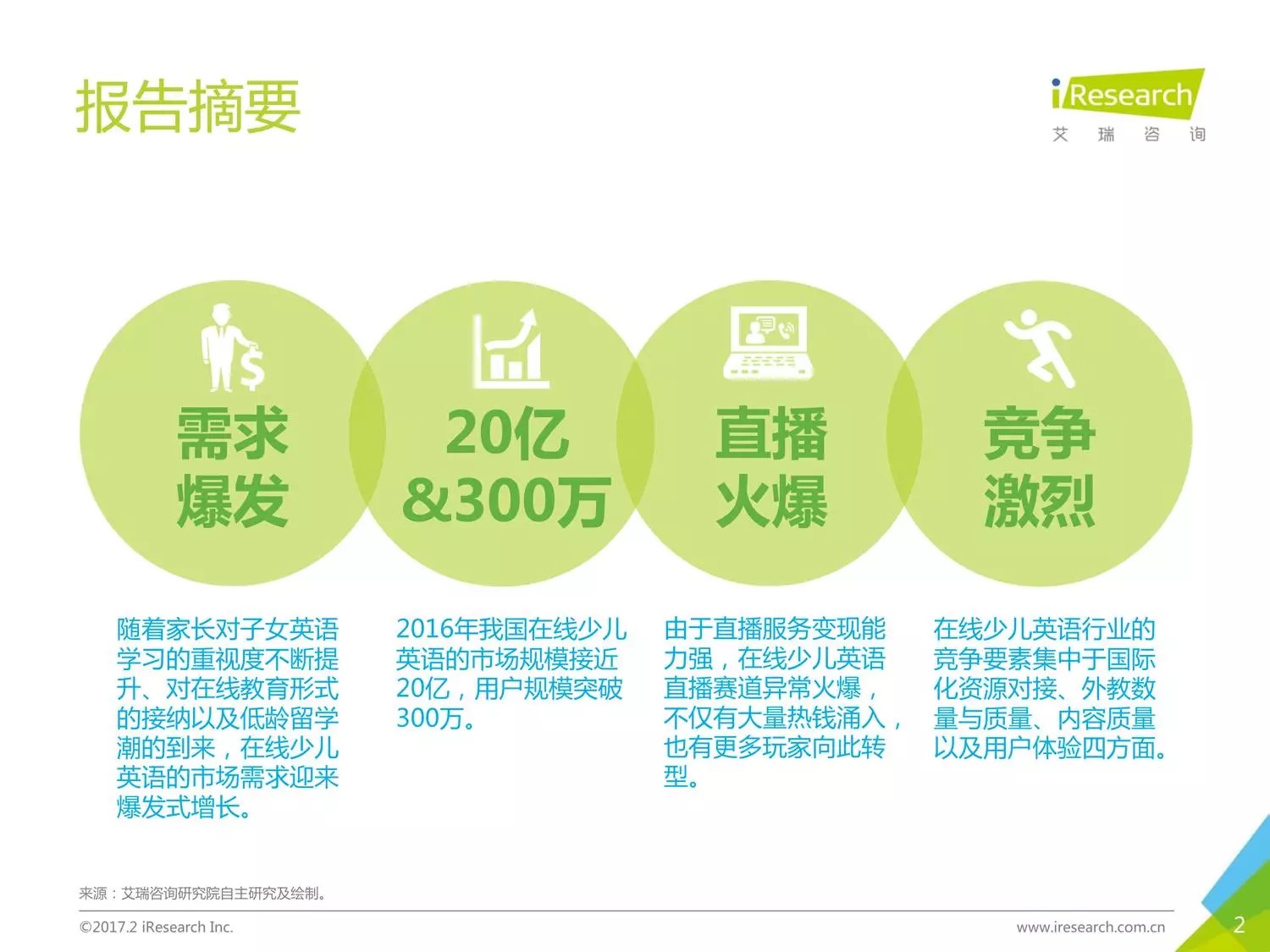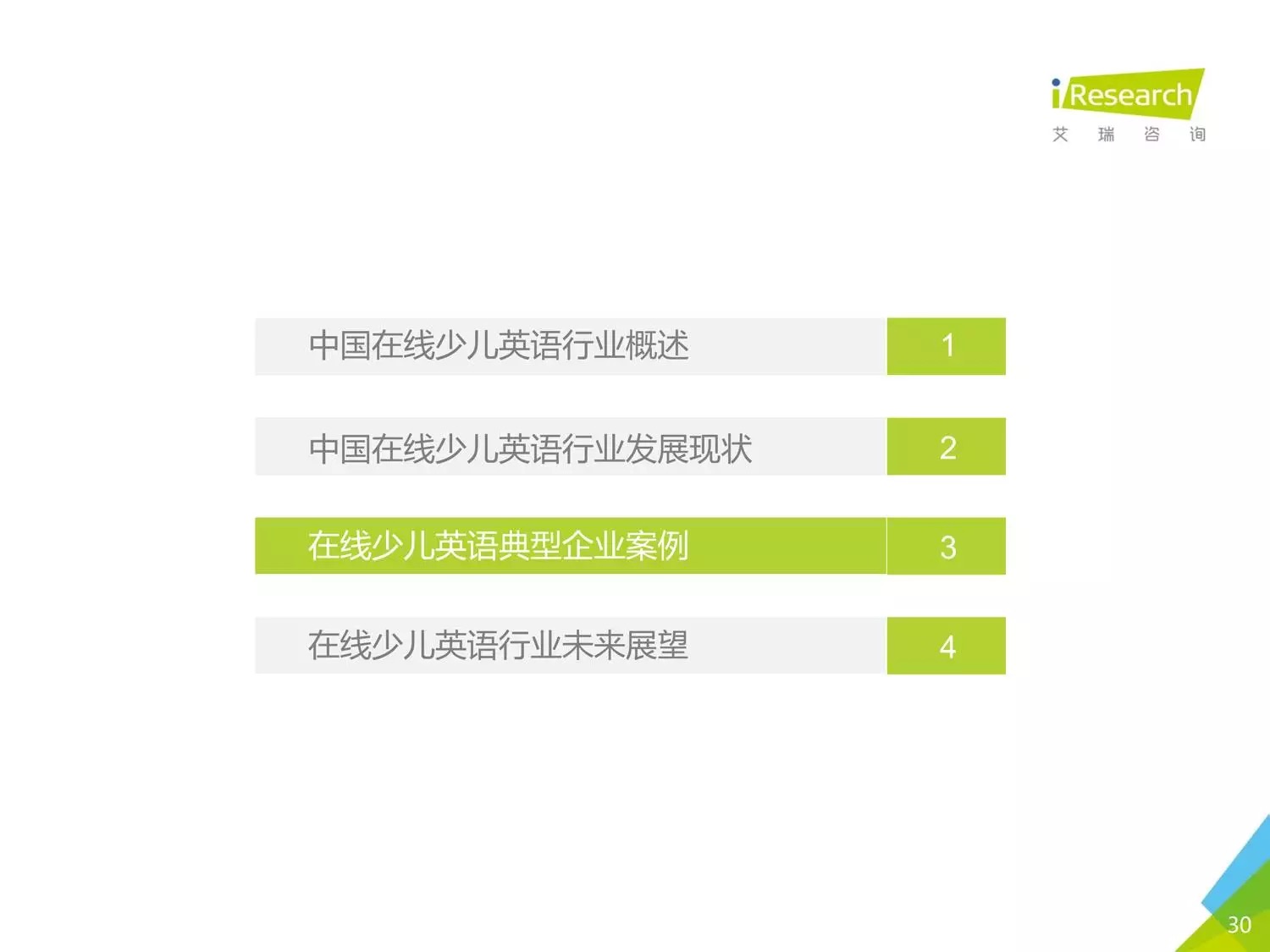本报告以时下几家比较受关注的公司为聚焦点,阐述了现在线少儿英语的发展状况。