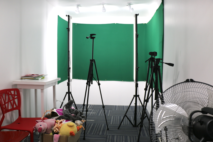 (直播教室,箱子里放的是直播时需要用到的道具)