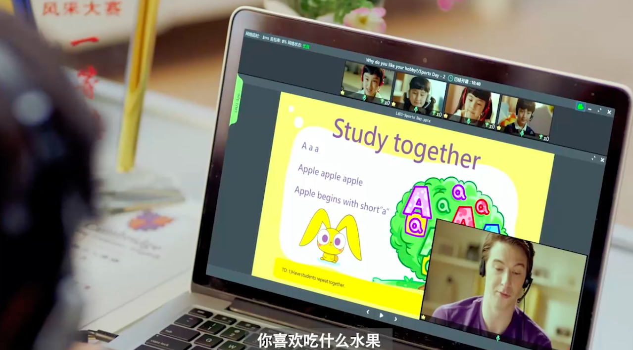 “我们测试的400多节课中都遇到过类似的情况。甚至,家长会给我们提前预警‘小孩非常内向’。到了13、14分钟,小孩真的什么都不说,但到了14分钟,我们看到他开始用鼠标圈单词,参与进来,慢慢开始开口。”
