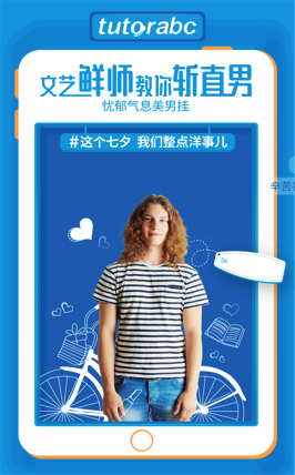 教师节期间,结合最受年轻人热捧的嘻哈rapper热点,tutorabc使用“一图到底”的表现手法,用户能通过横置手机屏不断左移图片,学习到围绕嘻哈风的相关英语词汇和常用方法;七夕节期间,tutorabc尝试连续72小时推出万人在线互动直播课程,由三位风格迥异的“网红外教”亲身示范约会之道。