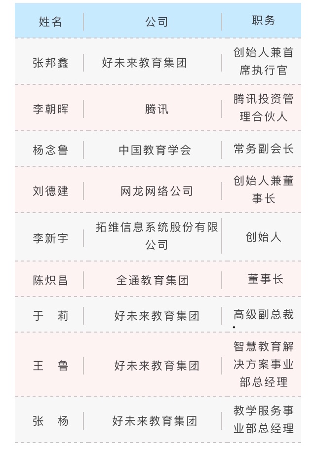 2.集合行业专家和导师资源。好未来将邀请政府、学术界领导和专家从不同维度解读教育信息化,其中包括教育部教育信息化专家组秘书长任友群教授、教育部全国教师教育信息化专家委员会委员黎加厚教授、中央电教馆原信息中心费龙主任等等。同时还会邀请网龙、拓维、全通等上市公司作为创业营的协办单位。