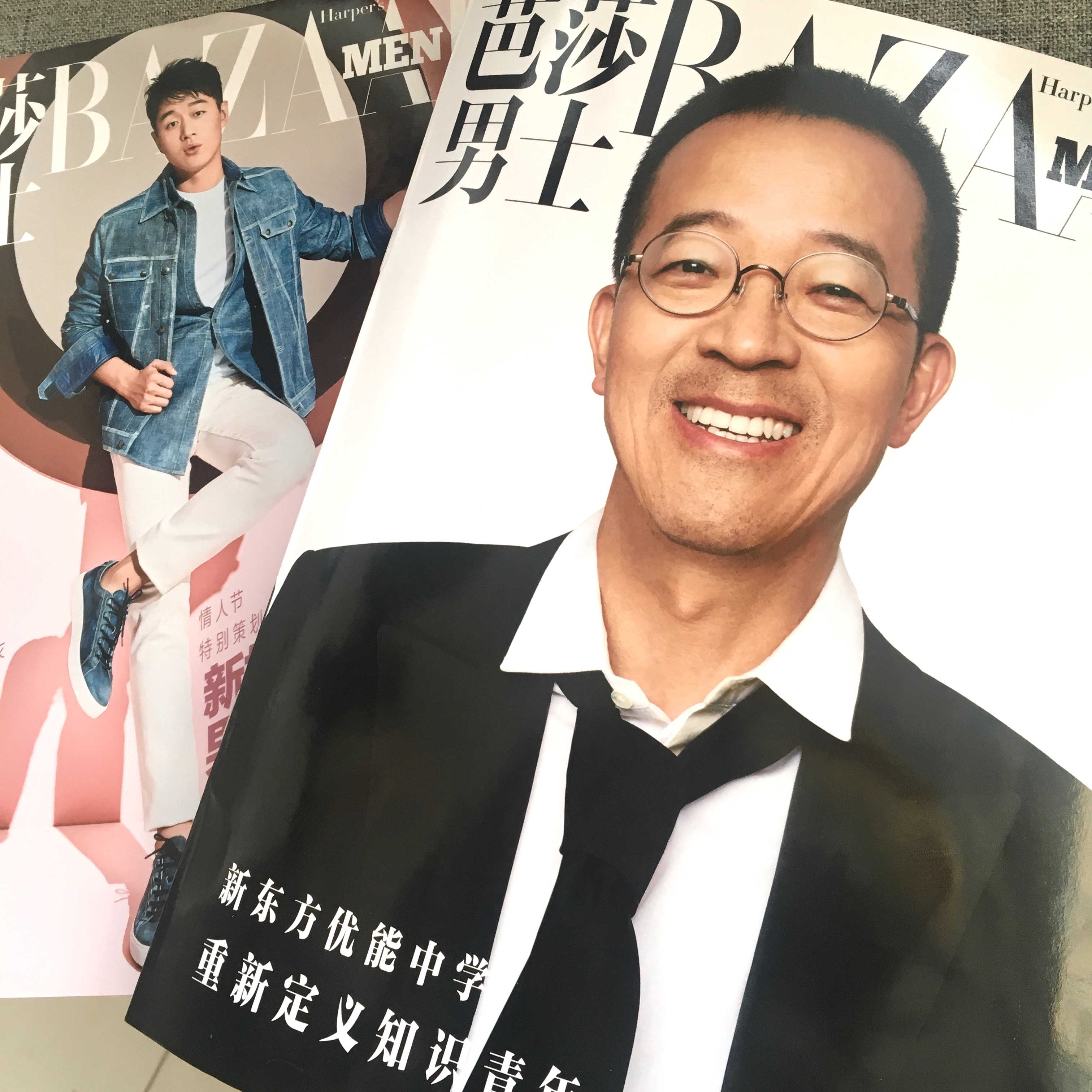 2月刊的《芭莎男士》已经摆上了书摊,一张熟悉的面孔在其副刊封面上——俞敏洪,黑白色系,西装革履,还带着简单的造型与妆发。 “新东方优能中学重新定义知识青年”——是封面的主题。