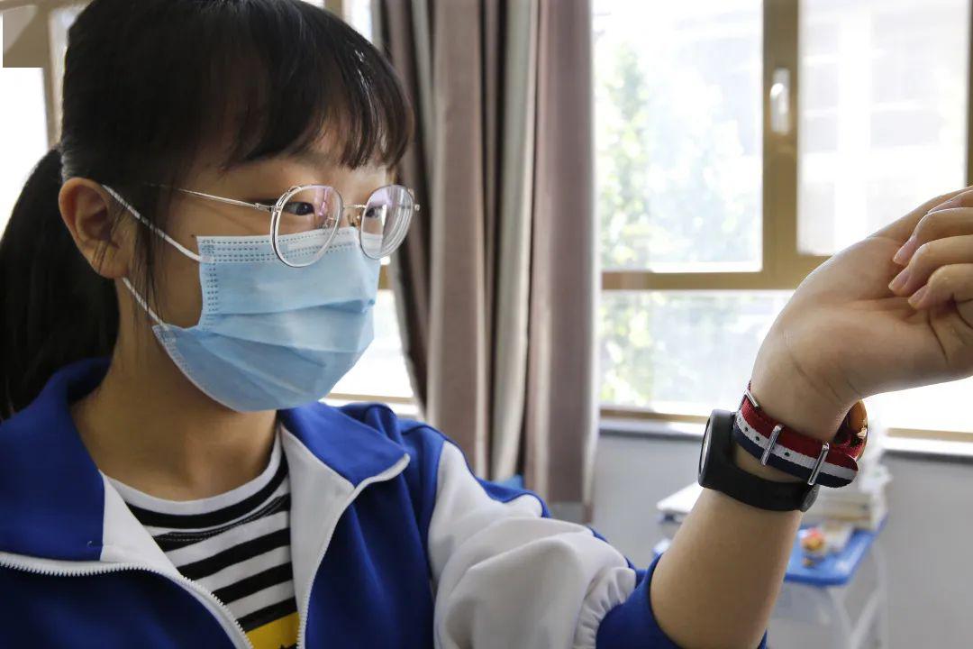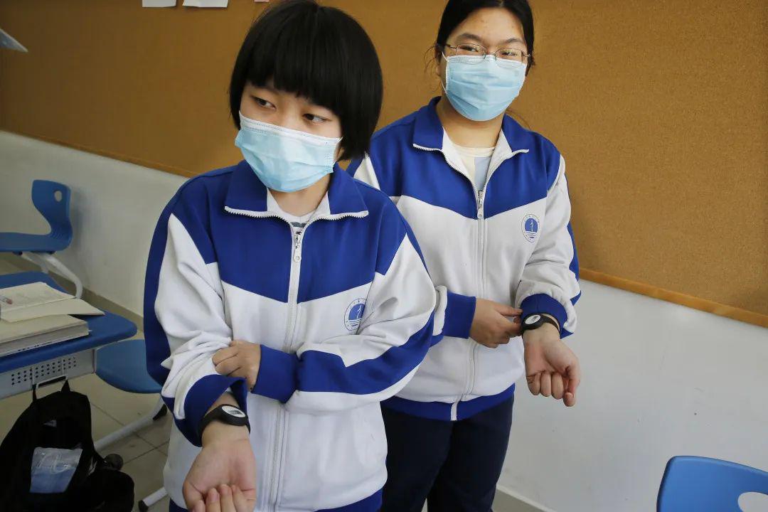 ▲ 丰台二中开展了精准科学的技术性防控,同学们都带上了智能体温计,老师可以集中打卡采集所有学生的体温信息。