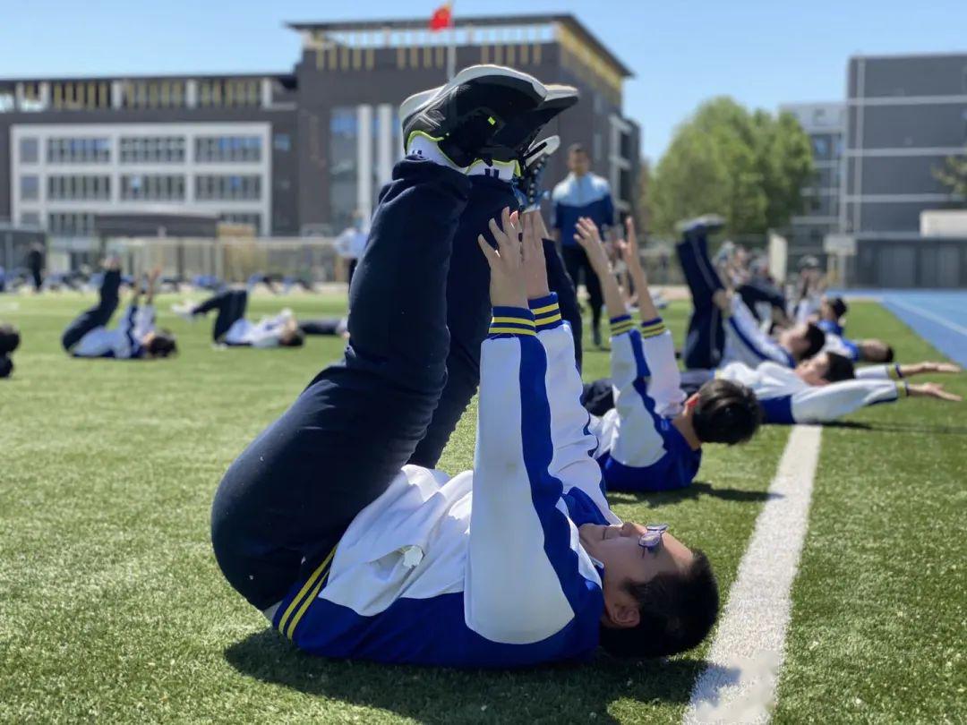 ▲ 在久违的体育课上,丰台二中的同学们保持安全距离,摘掉口罩,享受运动。